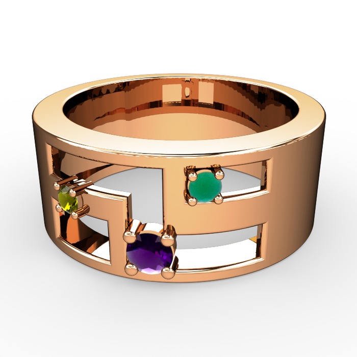Ametist, peridot ve kök zümrüt 8 ayar rose altın yüzük