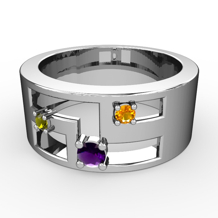 Ametist, peridot ve sitrin 8 ayar beyaz altın yüzük