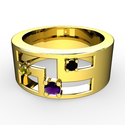 Ametist, peridot ve siyah zirkon 925 ayar altın kaplama gümüş yüzük