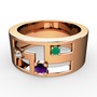 Ametist, pırlanta ve kök zümrüt 8 ayar rose altın yüzük (0.036 karat)
