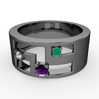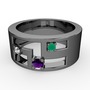 Ametist, pırlanta ve kök zümrüt 925 ayar siyah rodyum kaplama gümüş yüzük (0.036 karat)