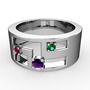 Ametist, rodolit garnet ve yeşil kuvars 18 ayar beyaz altın yüzük
