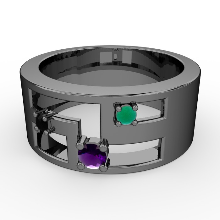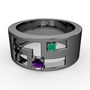 Ametist, siyah zirkon ve kök zümrüt 925 ayar siyah rodyum kaplama gümüş yüzük