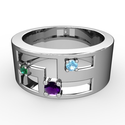 Ametist, yeşil kuvars ve akuamarin 18 ayar beyaz altın yüzük