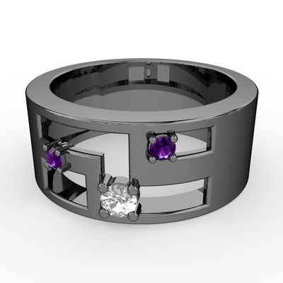 Beyaz zirkon ve ametist 925 ayar siyah rodyum kaplama gümüş yüzük