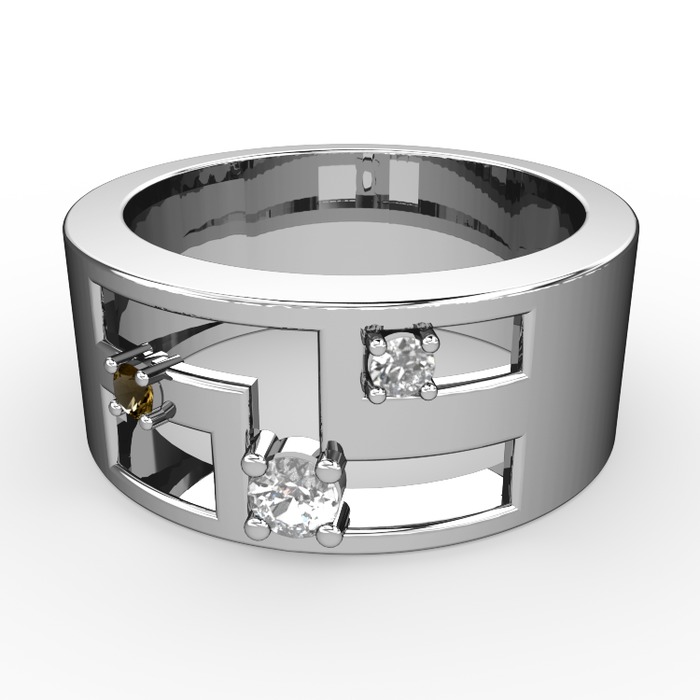 Beyaz zirkon, dumanlı kuvars ve swarovski 14 ayar beyaz altın yüzük