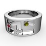 Beyaz zirkon, kök yakut ve peridot 14 ayar beyaz altın yüzük