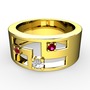 Beyaz zirkon, kök yakut ve rodolit garnet 18 ayar altın yüzük