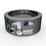 Beyaz zirkon, kök zümrüt ve ametist 925 ayar siyah rodyum kaplama gümüş yüzük