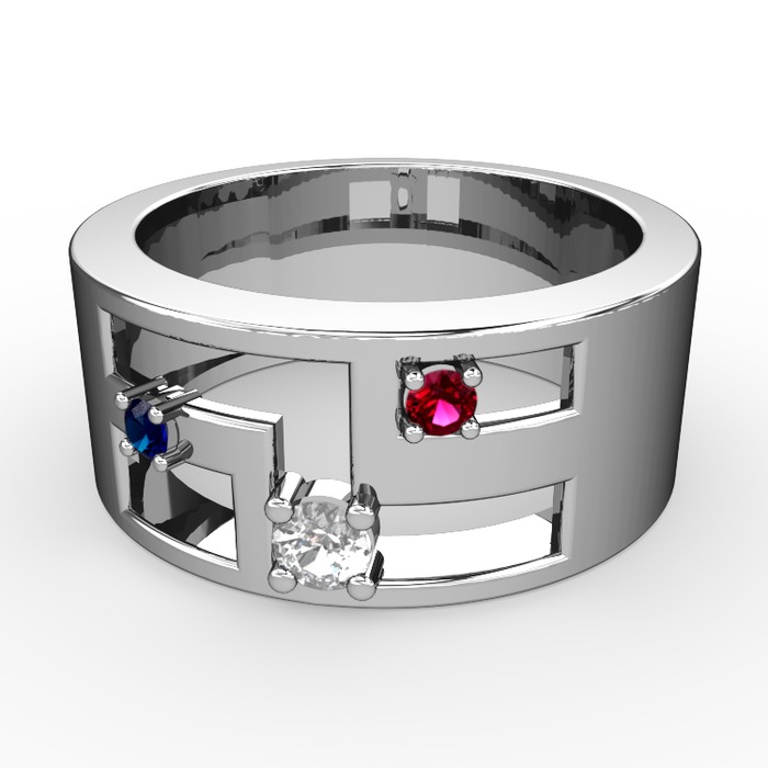 Beyaz zirkon, lab safir ve rodolit garnet 925 ayar gümüş yüzük