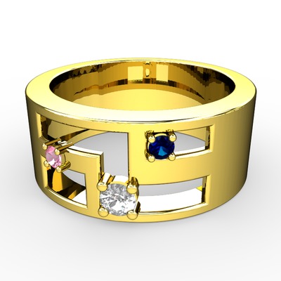 Beyaz zirkon, pembe kuvars ve lab safir 14 ayar altın yüzük