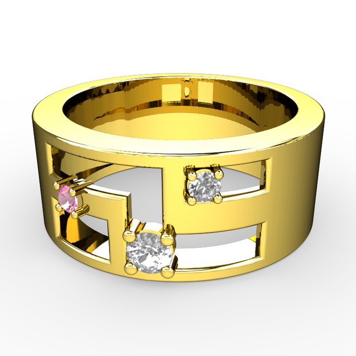Beyaz zirkon, pembe kuvars ve pırlanta 18 ayar altın yüzük (0.036 karat)