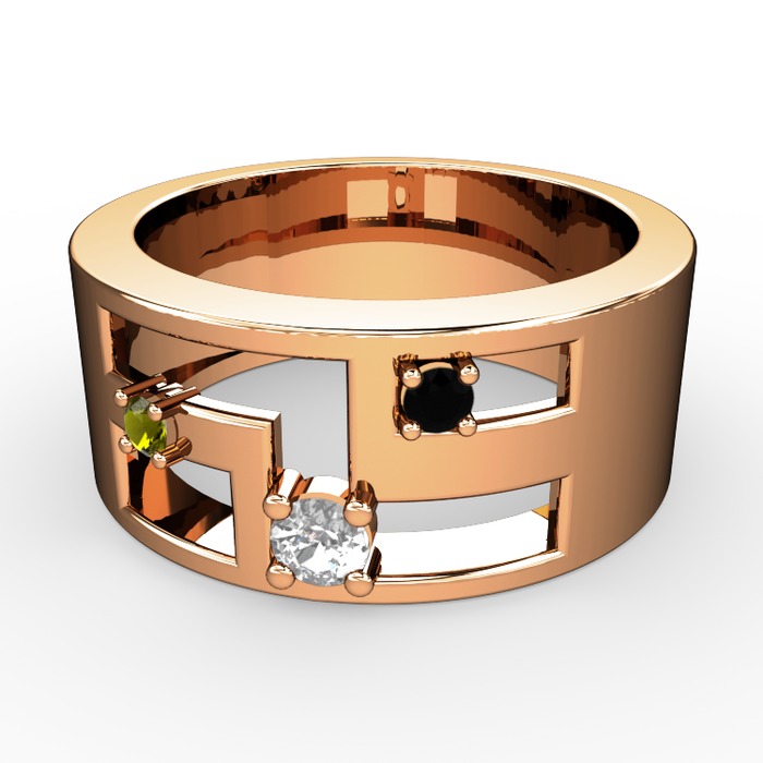Beyaz zirkon, peridot ve siyah zirkon 18 ayar rose altın yüzük