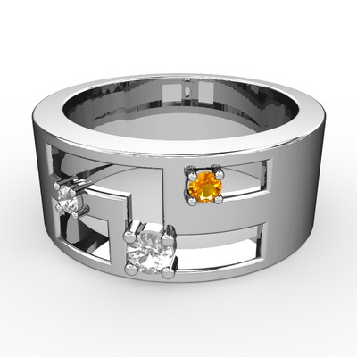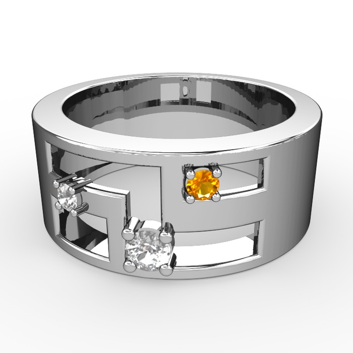 Beyaz zirkon ve sitrin 18 ayar beyaz altın yüzük