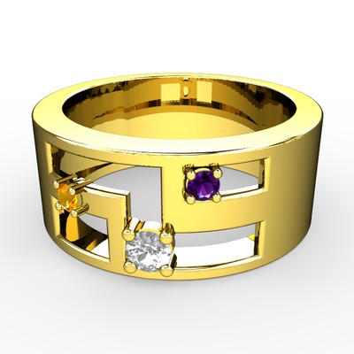 Beyaz zirkon, sitrin ve ametist 14 ayar altın yüzük