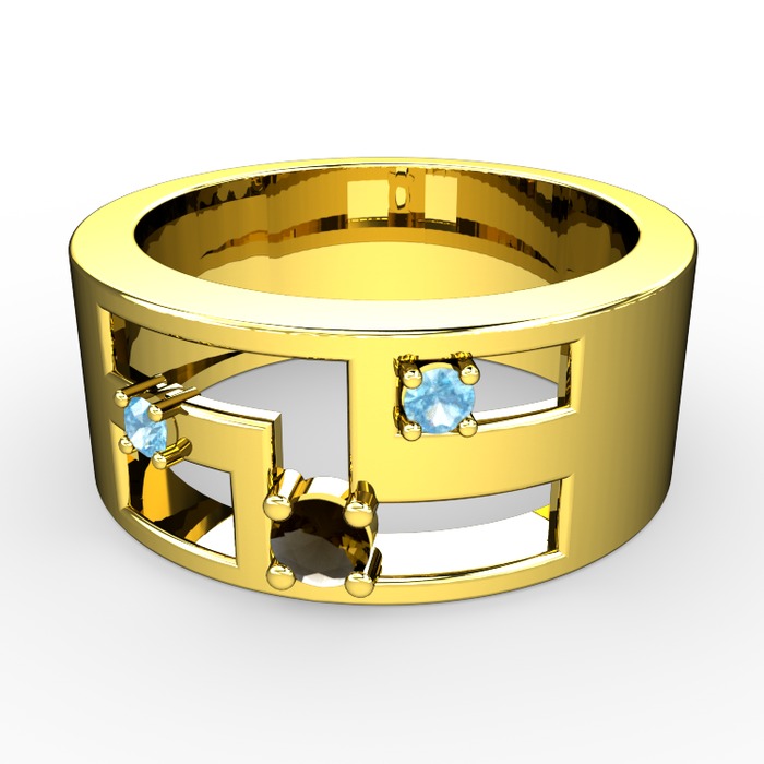 Dumanlı kuvars ve akuamarin 14 ayar altın yüzük