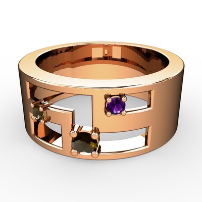 Dumanlı kuvars ve ametist 14 ayar rose altın yüzük