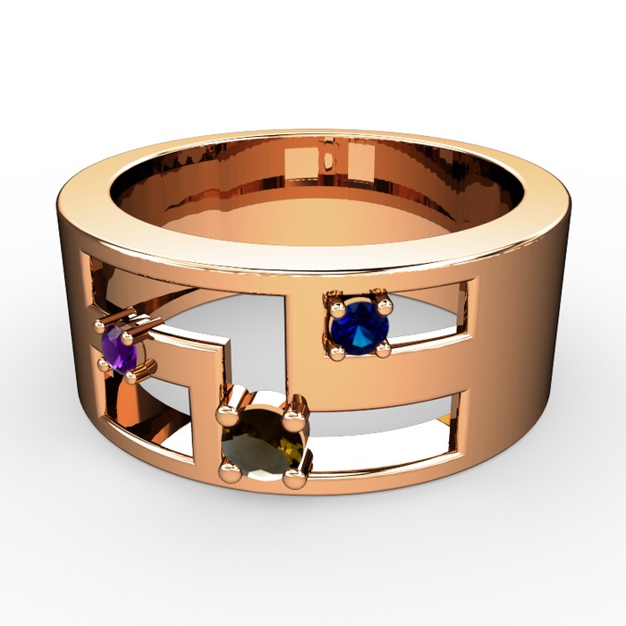 Dumanlı kuvars, ametist ve lab safir 8 ayar rose altın yüzük
