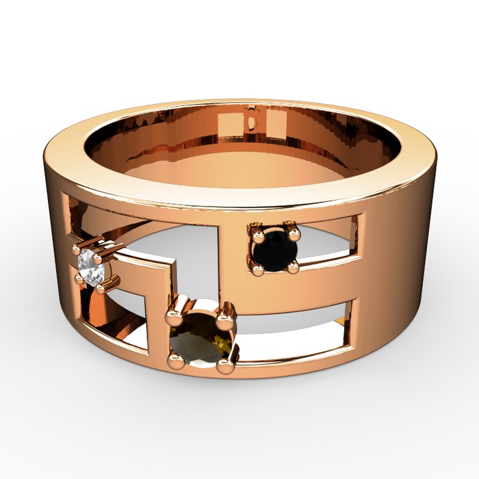 Dumanlı kuvars, beyaz zirkon ve siyah zirkon 8 ayar rose altın yüzük