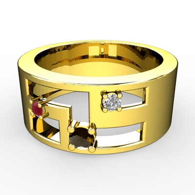 Dumanlı kuvars, kök yakut ve beyaz zirkon 925 ayar altın kaplama gümüş yüzük