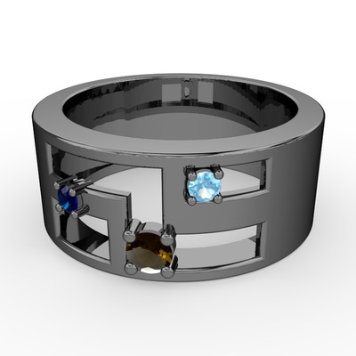 Dumanlı kuvars, lab safir ve akuamarin 925 ayar siyah rodyum kaplama gümüş yüzük