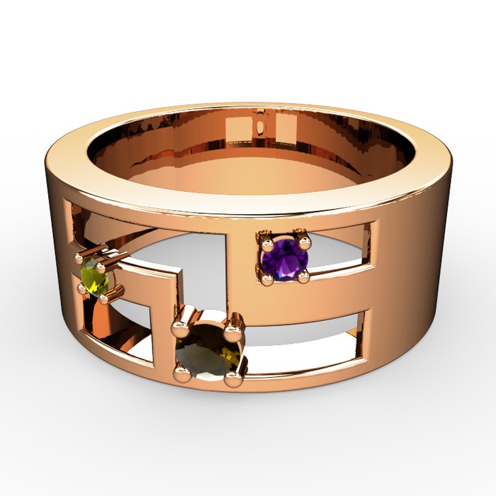 Dumanlı kuvars, peridot ve ametist 925 ayar rose altın kaplama gümüş yüzük