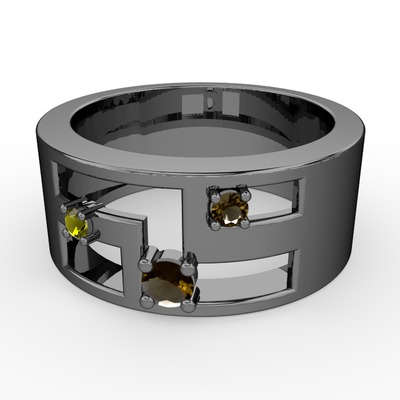 Dumanlı kuvars ve peridot 925 ayar siyah rodyum kaplama gümüş yüzük