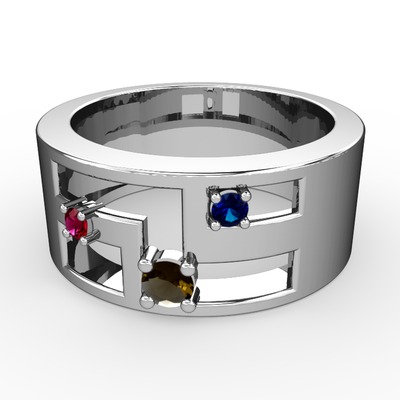 Dumanlı kuvars, rodolit garnet ve lab safir 8 ayar beyaz altın yüzük