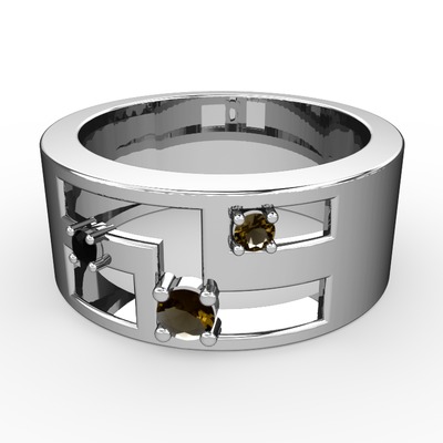 Dumanlı kuvars ve siyah zirkon 14 ayar beyaz altın yüzük