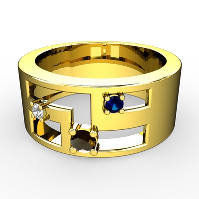 Dumanlı kuvars, swarovski ve lab safir 18 ayar altın yüzük