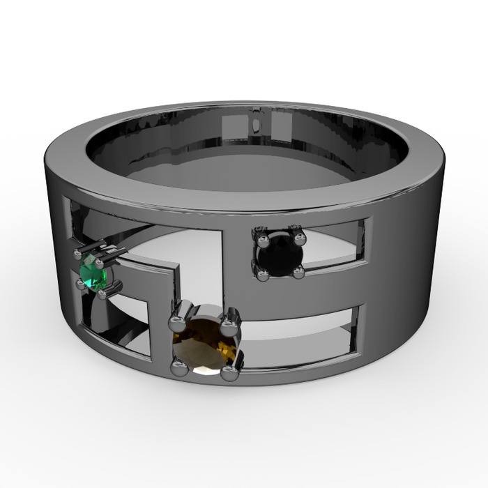 Dumanlı kuvars, yeşil kuvars ve siyah zirkon 925 ayar siyah rodyum kaplama gümüş yüzük