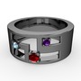 Garnet, akuamarin ve ametist 925 ayar siyah rodyum kaplama gümüş yüzük