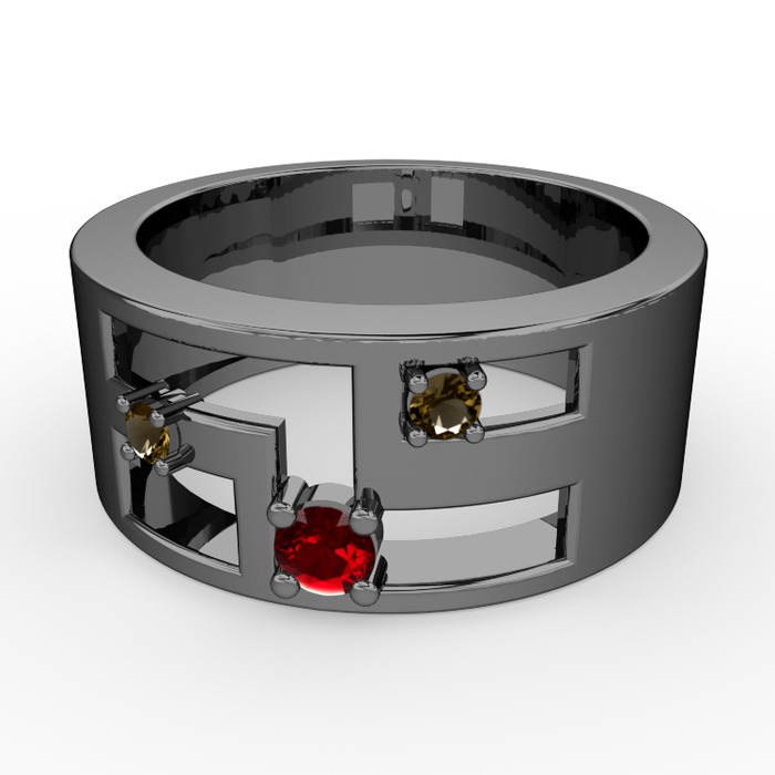 Garnet ve dumanlı kuvars 925 ayar siyah rodyum kaplama gümüş yüzük