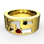 Garnet, dumanlı kuvars ve siyah zirkon 8 ayar altın yüzük