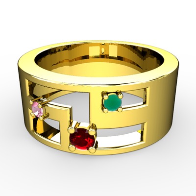 Garnet, pembe kuvars ve kök zümrüt 8 ayar altın yüzük