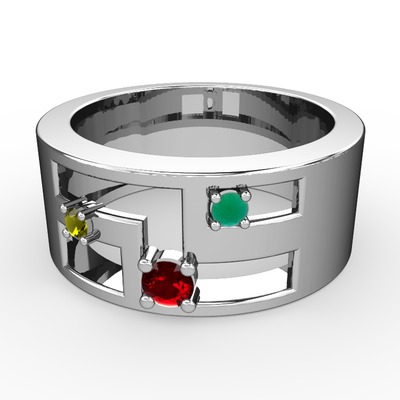 Garnet, peridot ve kök zümrüt 18 ayar beyaz altın yüzük