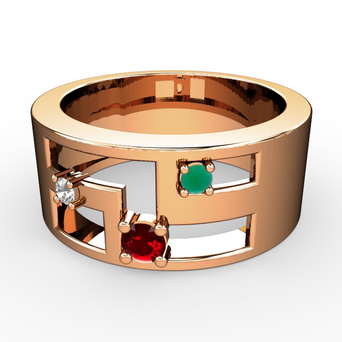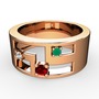 Garnet, pırlanta ve kök zümrüt 8 ayar rose altın yüzük (0.036 karat)