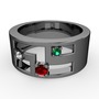 Garnet, pırlanta ve yeşil kuvars 925 ayar siyah rodyum kaplama gümüş yüzük (0.036 karat)