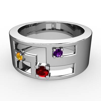 Garnet, sitrin ve ametist 925 ayar gümüş yüzük