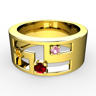 Garnet, sitrin ve pembe kuvars 925 ayar altın kaplama gümüş yüzük