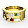Garnet, siyah zirkon ve yeşil kuvars 14 ayar altın yüzük