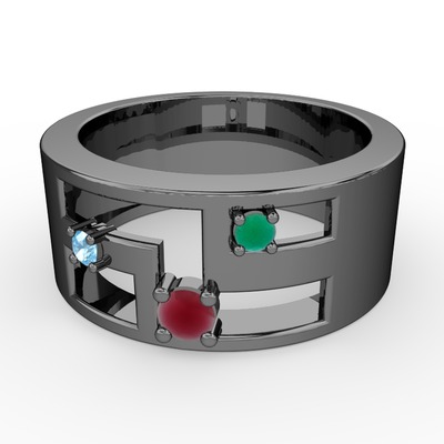 Kök yakut, akuamarin ve kök zümrüt 925 ayar siyah rodyum kaplama gümüş yüzük
