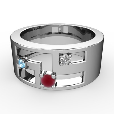 Kök yakut, akuamarin ve pırlanta 8 ayar beyaz altın yüzük (0.036 karat)