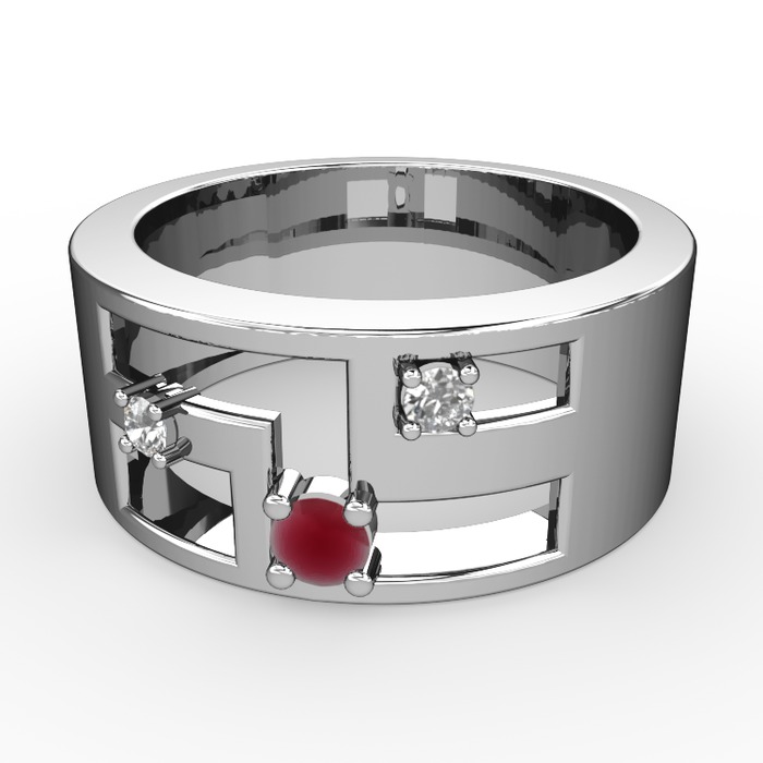 Kök yakut, beyaz zirkon ve pırlanta 8 ayar beyaz altın yüzük (0.036 karat)