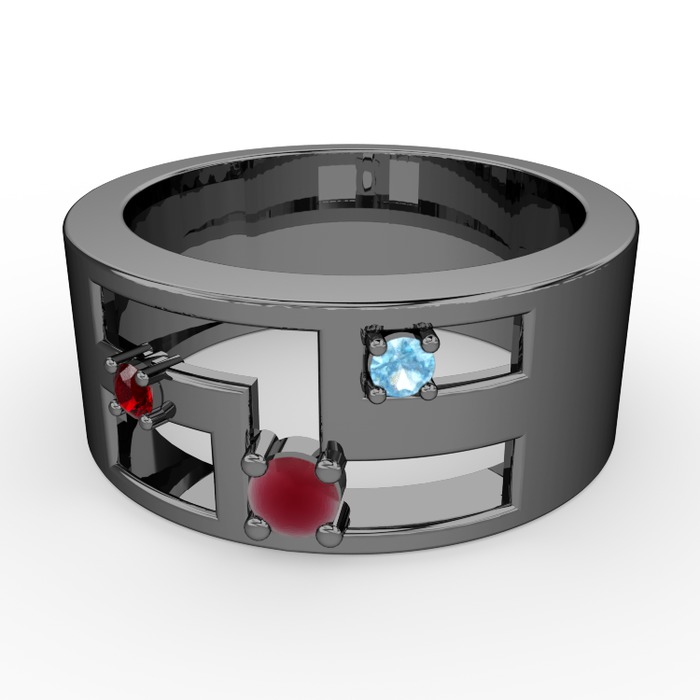 Kök yakut, garnet ve akuamarin 925 ayar siyah rodyum kaplama gümüş yüzük