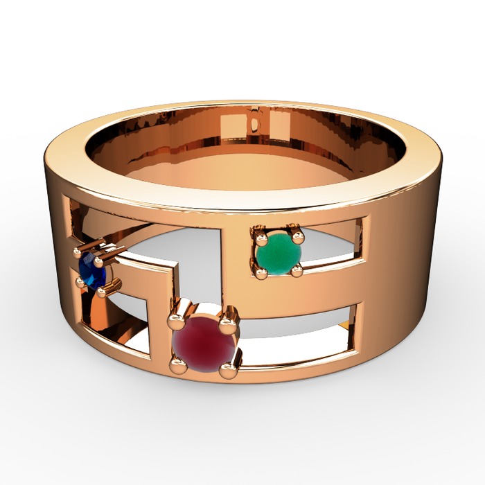 Kök yakut, lab safir ve kök zümrüt 18 ayar rose altın yüzük