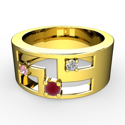 Kök yakut, pembe kuvars ve pırlanta 18 ayar altın yüzük (0.036 karat)