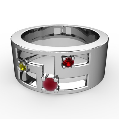 Kök yakut, peridot ve garnet 18 ayar beyaz altın yüzük