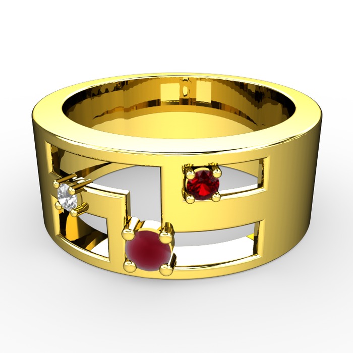 Kök yakut, pırlanta ve garnet 8 ayar altın yüzük (0.036 karat)