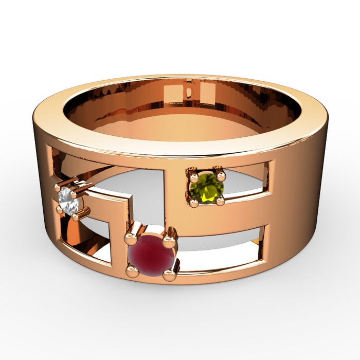 Kök yakut, pırlanta ve peridot 14 ayar rose altın yüzük (0.036 karat)